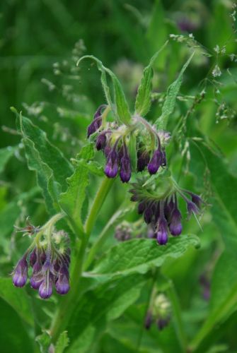 Boraginacée. Oreille d'âne, Langue de vache. . Son nom tire son origine de consolidare « consolider, affermir » en raison de ses vertus à cicatriser les plaies (astringent) et à consolider des fractures. Les consoudes sont des plantes à haut potentiel nectarifère. Les fleurs sont systématiquement visitées par les bourdons en raison de leur haute attractivité.