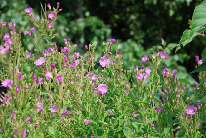 Onagracée. Aussi appelée Epilobe hérissé en raison des poils hérissés qui parcourent sa tige. Les poils des aigrettes de ses graines furent un temps exploités pour tenter de remplacer la culture du coton mais sans succès. Fleurs rose vif à 4 pétales, stigmate en croix.