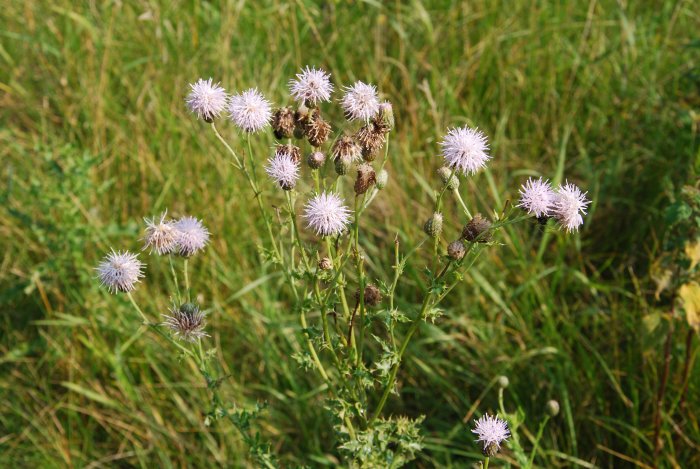 Astéracée. Plante rameuse grande (1m), feuilles odorantes découpées en lobes eux-mêmes dentés, face inférieure blanche. Grappe de petits capitules sphériques de fleurs blanchâtres.