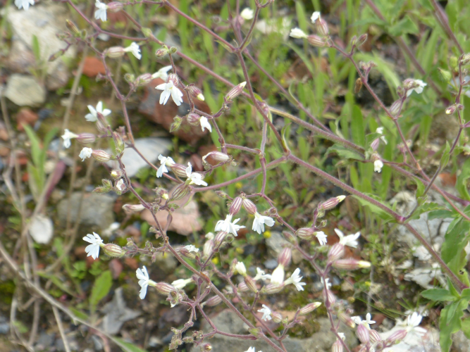 Caryophyllacée. Feuilles opposées. Cyme de fleurs pentamères blanches, sépales soudés, pétales libres et présentant une paracorolle. La plante est dioïque, il y a des pieds mâles à fleur à 10 étamines et des pieds femelles à pistil à 5 stigmates.