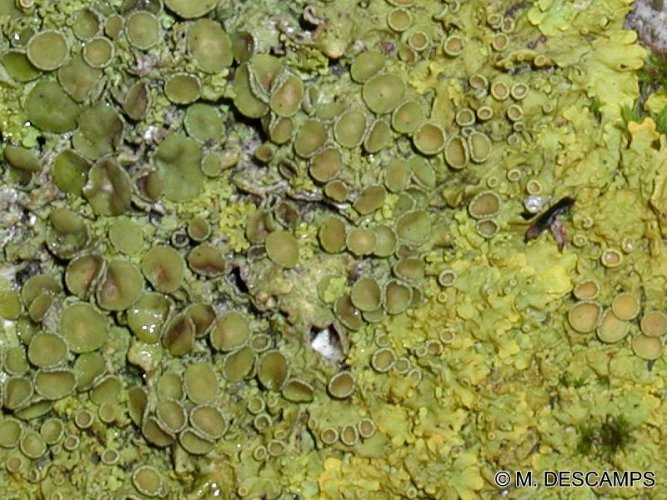 Sur support acide, les lichens observés pourront être, entre autres, Psilolechia lucida, Candellariella vitellina ou Buellia punctata.