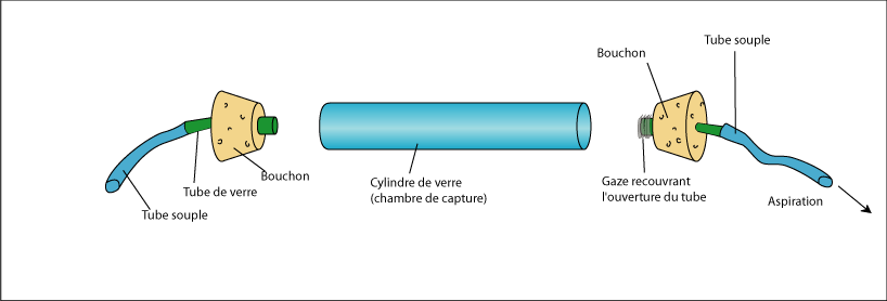 L'aspirateur à bouche permet la chasse à vue sur le mur sans endommager les échantillons.